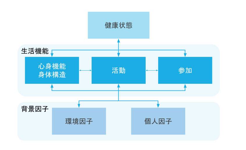 そこで、WHOが2001年に公表した「ICF(国際生活機能分類)」という枠組みが用いられるようになりました。